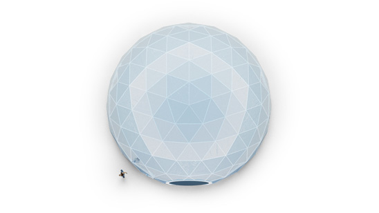 The biggest available structure that does not require any have equipment for its assembly. Thanks to this, the O110 event dome can be set up in any location, no matter how remote or invonveniently, through the use of our very own telescopic lift.