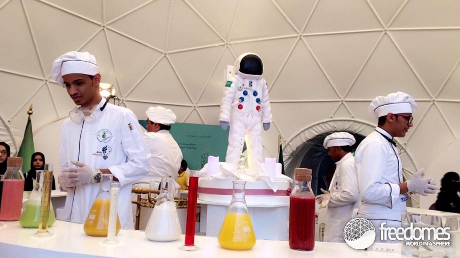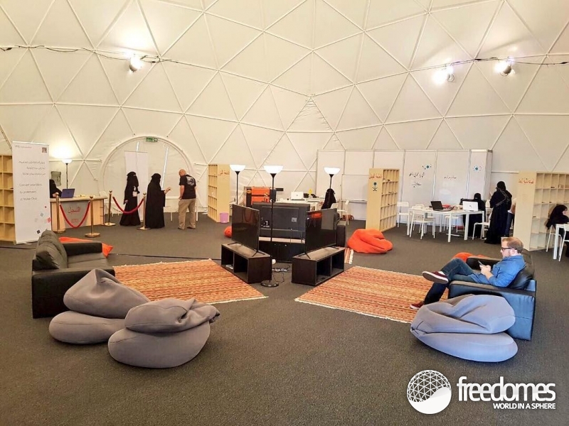 5 interconnected geodesic domes from Freedomes* served as pavilions for ”OKAZ The Future Exhibition” showcasing the ideas and products of the future and some 20 new projects in all fields of knowledge: from technology, medicine & health, to energy, physics and many, many more.